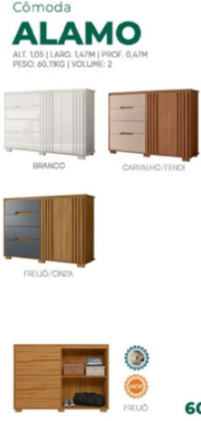 | Cor | Branco, Carvalho/Fendi, Freijo, Freijo/Cinza |